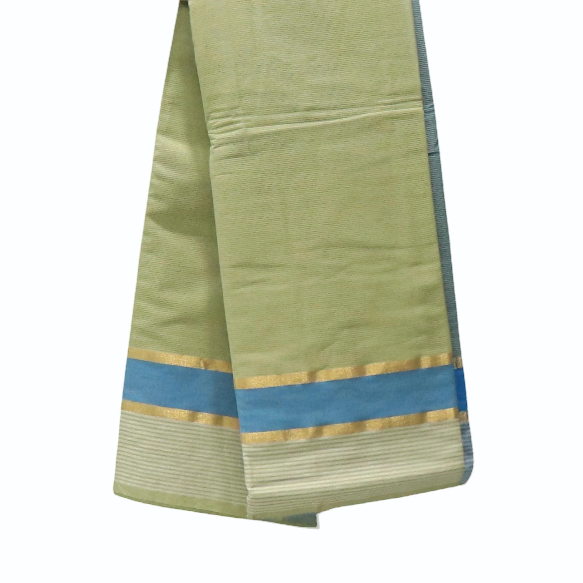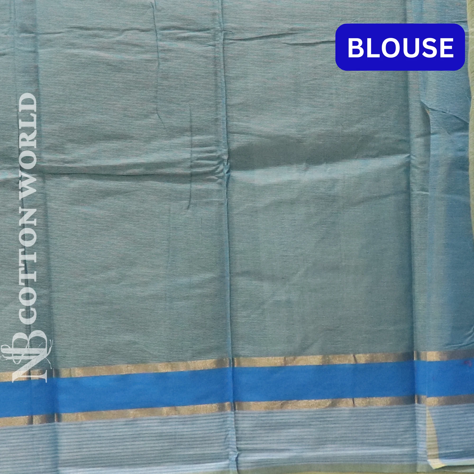 Mangalagiri plain saree with light Olive green color having thin line zari and thread woven border